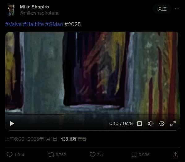 新年伊始,在《半条命》系列中饰演了重要角色 G-Man 的演员 Mike Shapiro 在社交媒体推特(X)上为粉丝们分享了一条新年消息。然而正如游戏中的 G-Man 一样,这条消息非常的隐晦,但随附的一些标签暗示,今年可能我们真的要听到《半条命》相关的新消息了。