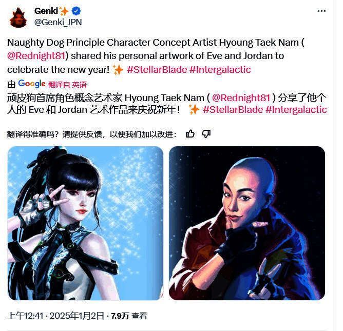 顽皮狗首席角色概念设计师Hyoung Taek Nam分享了他个人的伊芙和乔丹画作来庆祝新年,这两名女性主角分别代表了东西方迥然不同的审美。
