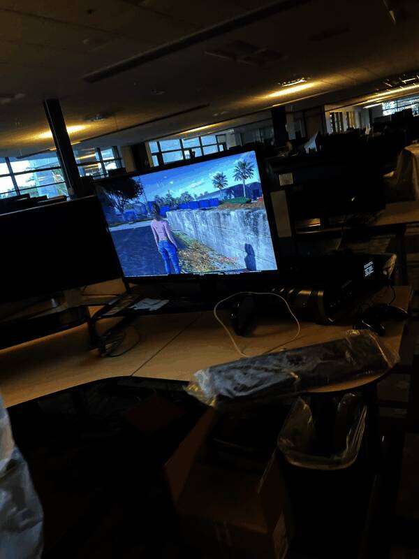 GTA 6+表示,网传R星圣地亚哥工作室的一名清洁工拍摄并泄露了《GTA6》早期画面。据说该照片拍摄于2021年,当时办公室空无一人。从照片中可以看到2019-2020年发布的PS5开发套件。