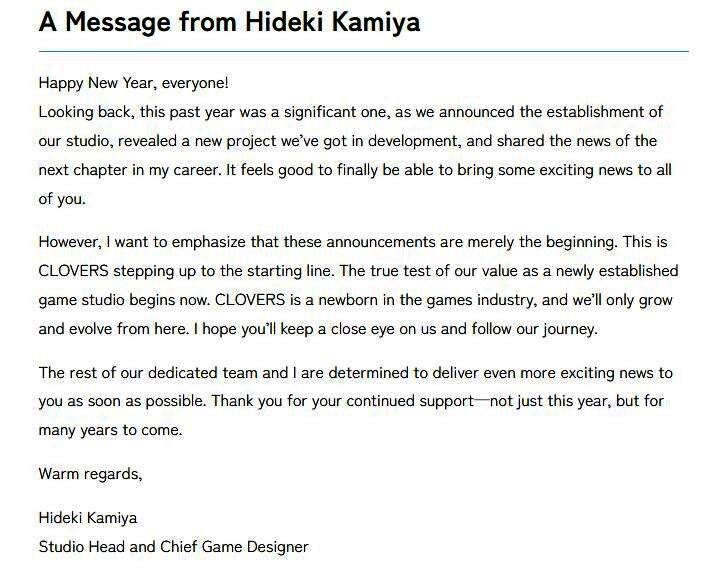 在2024 TGA颁奖典礼上,卡普空公布了动作冒险游戏《大神》续集正在开发的消息,该作将由原版游戏的总监神谷英树担任总监,新工作室Clovers(由神谷英树成立吧)负责制作,现在在神谷英树发布2025新年贺词中,他再次强调了这一点。