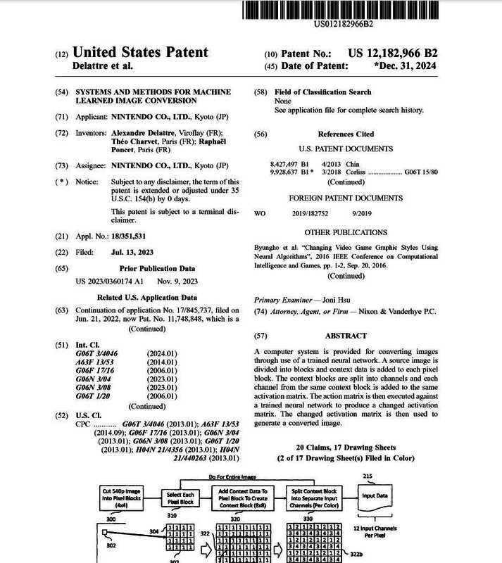 近日(确切的说是2024年12月31日),任天堂一项在2023年7月13日就申请的新专利通过了美国有关部门的审批,该专利被描述为通过“机器学习系统,可以将一种分辨率的图像转换为更高分辨率的图像”。