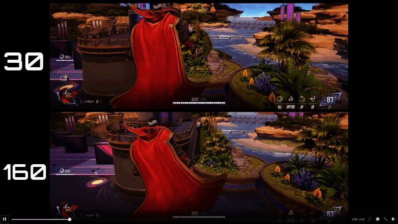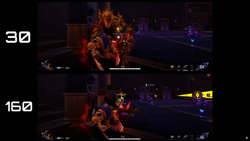 “nyin_”一共在30fps和120fps的环境下对比了5位会因低帧率而受到影响的英雄角色,分别是奇异博士、金刚狼、毒液、秘客和星爵,可以明显的看到在低帧率情况下,这些角色的跳跃、移动、攻击次数、冲刺距离等方面性能全都受到影响而降低。