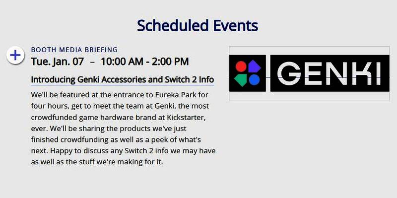 在任天堂正式公布Switch继任者(Switch 2)之前,已经有许多外设厂商在分享该主机的相关信息了。根据外设厂商Genki的消息称,他们将在2025年CES上举行特别活动,讨论他们可能拥有的任何Switch 2信息以及他们为其制作的东西,具体时间为1月7日10:00至14:00(北京时间可能是1月8日2:00至6:00)。