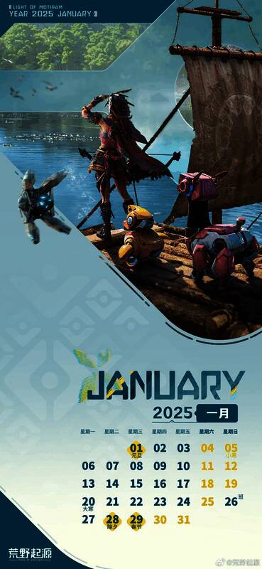 官方表示:“亲爱的拓荒者们,新年快乐!随着2025年的第一缕阳光,我们为各位拓荒者准备了一份小心意——荒野起源2025年1月到3月的月历!让我们在这个全新的开始,一起在荒野中探索、冒险!欢迎各位拓荒者下载使用。”