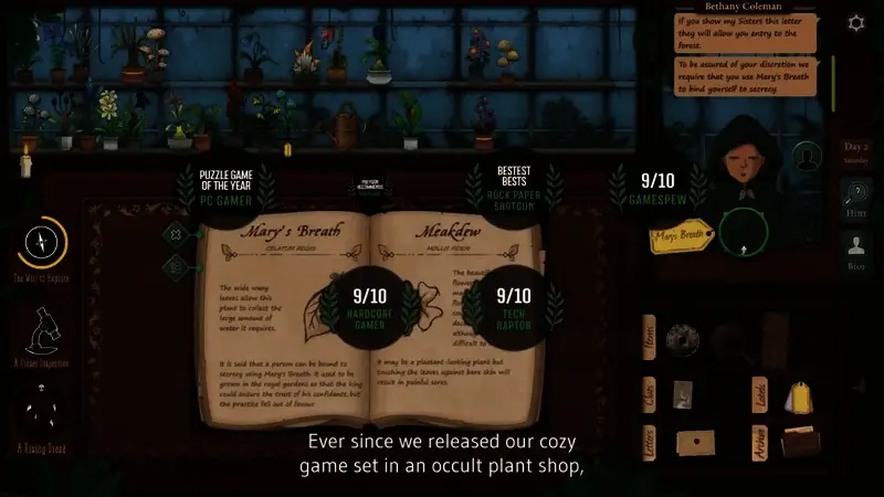 成为神秘学古物店的店主。探索离奇而幽暗的昂德米尔镇,这里怪事频发,充满黑暗谜团。寻找和识别秘术遗物,并使用你的收藏品帮助镇上居民解决他们稀奇古怪的问题——另外,别忘了撸猫哦!