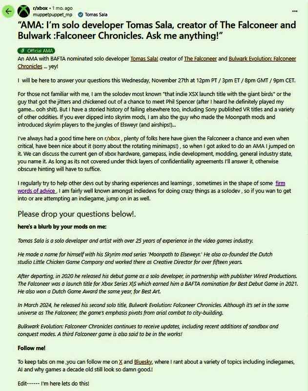 打造了《空战猎鹰》和《堡垒:猎鹰战纪》的独立游戏开发者Thomas Sala,近日在reddit AMA的问答帖中,回答了有关Xbox Game Pass的相关问题,对此Thomas Sala表示自己十分看好XGP,并且希望自己的作品再次出现在该服务上。