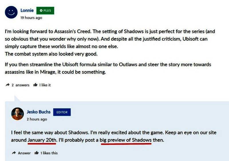 根据德国杂志“Gamestar”编辑Jesko Buchs表示,他们可能会在2025年1月20日发布了一个《刺客信条:影》的大型预览视频,考虑到此前游戏记者Tom Henderson曾表示《刺客信条:影》媒体预览将在2025年1月中旬发布,所以这一天很有可能是媒体预览解禁的日子,届时我们将能看到大量媒体预览信息发布。