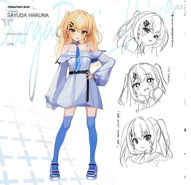 ·《PURGATORY: BLUE》的故事发生在近未来科技高速发展的日本,玩家扮演男主角相馬璃人,在与两位性格打扮各有不同的女主角夢丘杏音、右田春奈接触后,展开了充满谜题的神秘恋爱冒险。