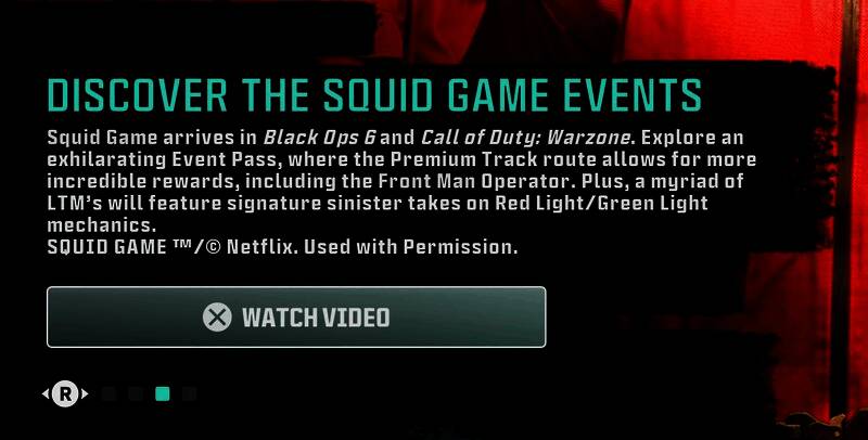 通行证介绍写道:“《鱿鱼游戏》登陆《黑色行动6》和《使命召唤:战区》。探索令人兴奋的活动通行证,其中包括高级路线可以提供更多令人难以置信的奖励,包括‘FrontMan’干员。此外,各种限时模式将包含剧集中独特的红灯停/绿灯行机制。”