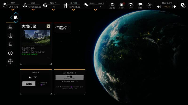 《深暗森林》灵感源自《三体》中“黑暗森林”法则,游戏一改传统RTS操作部队的方式,专注于信息收集、分析与战略抉择。玩家需合理分配经济与科研资源,建设军事基地与太空港,确保文明生存。在紧张的战略对抗中,玩家既要规划宏观方向,又需灵活应对局势变化,以智慧平衡多方需求,为文明争得一线生机。这场太空中的生存较量,你准备好接受挑战了吗?