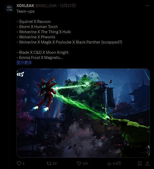 同时,泄露者还透露了《漫威争锋》中即将推出的其他内容,包括新的团队连携技能,以及新的地图。最近泄露的霹雳火和石头人也被提及,但传闻的奥创并没有被提到。