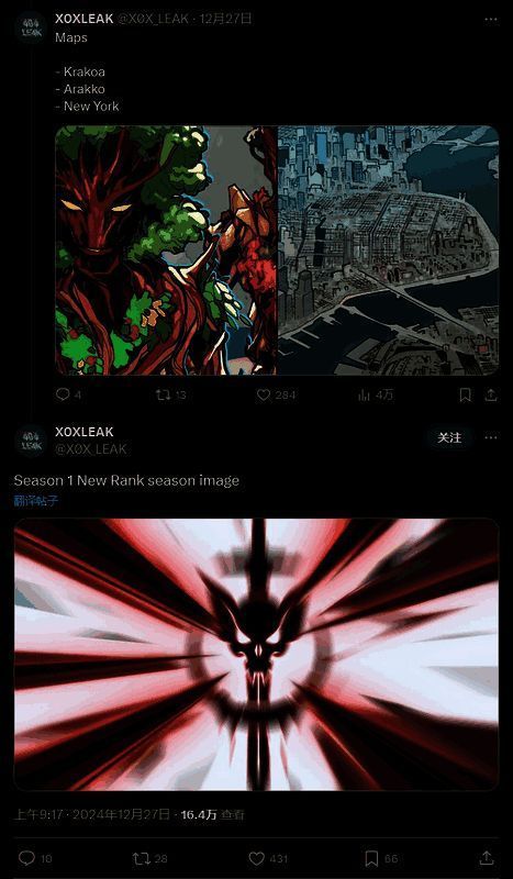 新地图可能将包括纽约、克拉科亚(变种人国家,活着的岛屿)和阿拉科(克拉科亚的姐妹体)。此外,他还分享了第一赛季的排位赛标志。