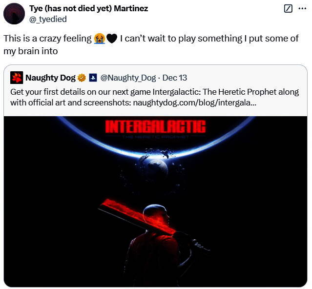 近日视觉艺术家Tye Martinez发推文称,他已参与到顽皮狗新作《星际:异端先知》项目中,“这是种疯狂的感觉,我迫不及待地想玩一些我投入心血的东西。”
