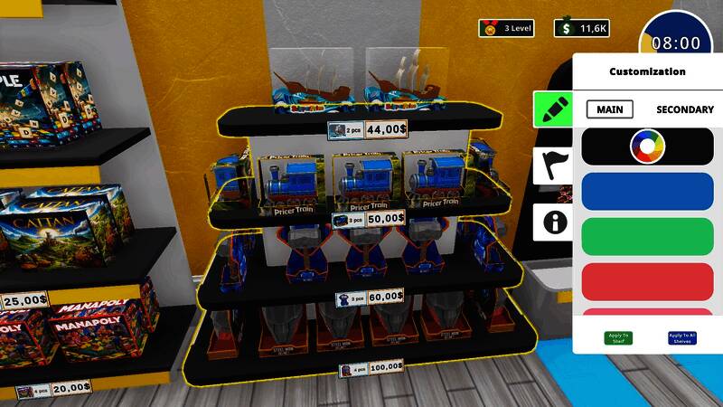 从顶级品牌购买许可证,囤积各种玩具。为你的商店增添多样性,并随着每个新品牌的引入吸引更多顾客。