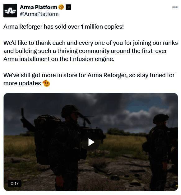 近日,开发商Bohemia Interactive宣布,《武装突袭Reforger》销量目前已突破100万份,接下来,Bohemia Interactive将为该作更新更多内容。