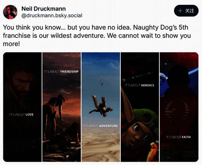 尼尔表示:“你以为你知道......其实你根本不知道。顽皮狗的第五个系列游戏将是我们最疯狂的冒险,我们迫不及待地想给你们展示更多。”