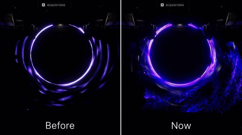 “光能族”朝着梅里迪亚缓慢推进的情况有点让人担心,特别是自从那个黑洞看起来比以前可怕多了,有许多额外的迷幻粒子效果在它的边缘舞动。这儿有一张方便对比的黑洞前后对比图。