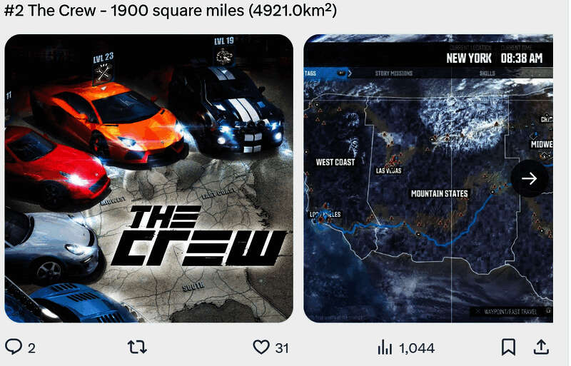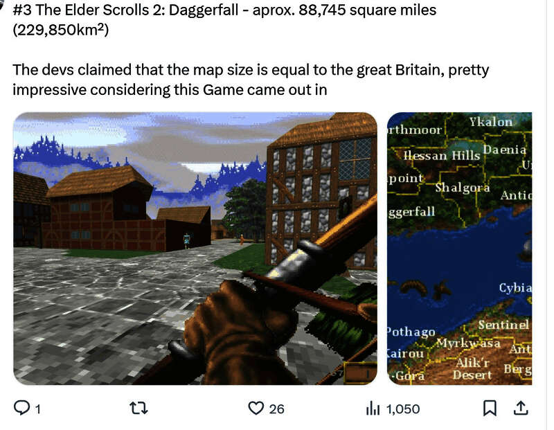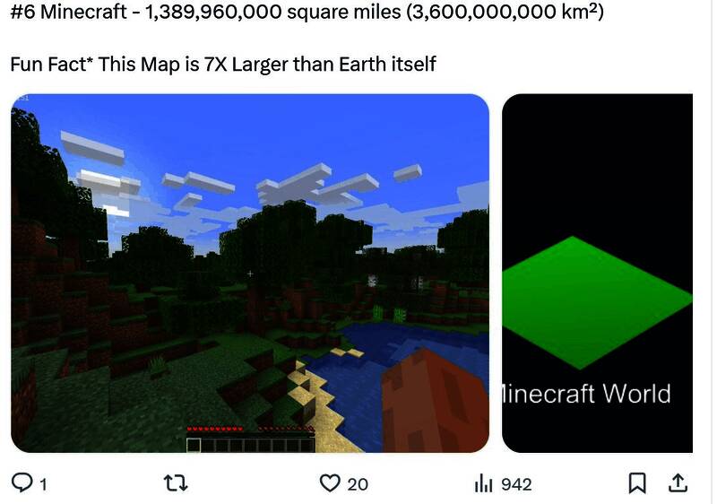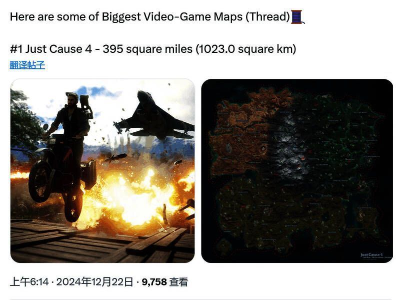 有玩家统计了地图最大的一些游戏,有很多玩家耳熟能详的作品,你能猜到哪一个最大吗?