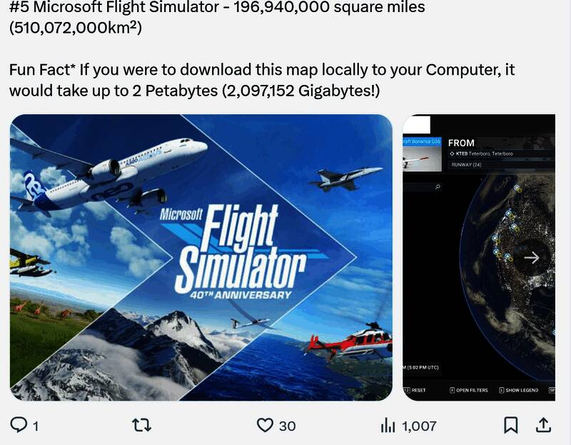 4.《微软飞行模拟》,1亿9694万平方公里