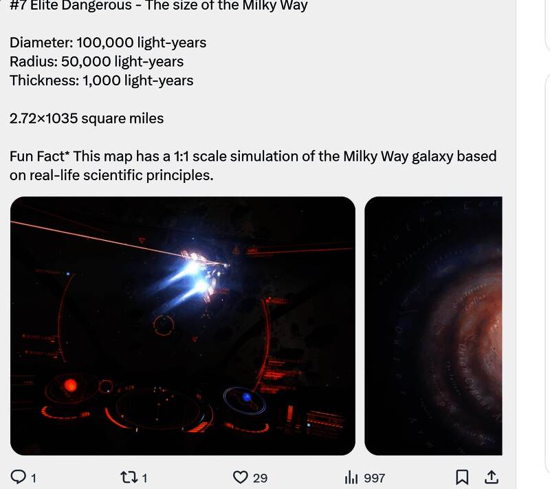 该地图根据现实生活中的科学原理以1:1的比例模拟了银河系