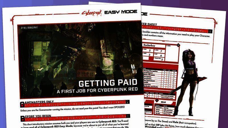 这本规则手册 PDF 被称为《赛博朋克RED:简单模式(Easy Mode)》,类似桌面 RPG 之王《龙与地下城》的入门手册。在 PDF 中包括了夜之城的背景介绍、游戏规则介绍、5 个预制角色,以及各种任务和对应的报酬。