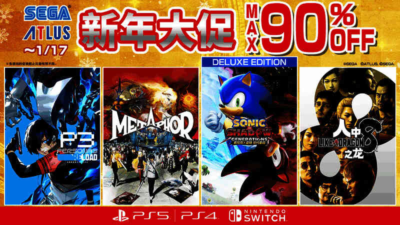 世嘉正于PlayStation™Store和Nintendo eShop 开展“SEGA新年大促”活动,部分PlayStation®5/PlayStation®4/Nintendo Switch™游戏以特惠价回馈玩家。