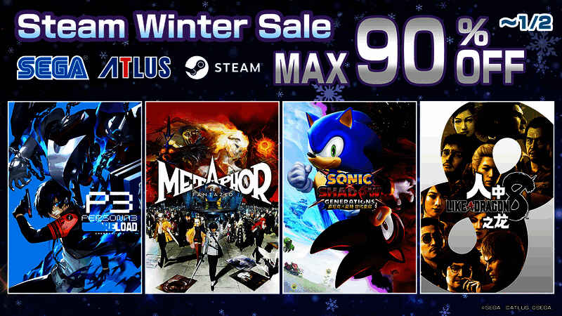 部分SEGA/ATLUS出品的PC游戏参与Steam冬季特卖促销活动,祭出限时优惠价。本次活动将持续至2025年1月2日,请勿错过!