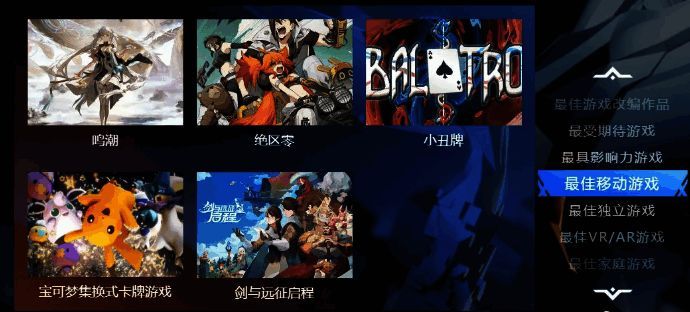 (今年最佳移动游戏奖项,《绝区零》、《鸣潮》、《剑与远征:启程》三款国产游戏入围)
