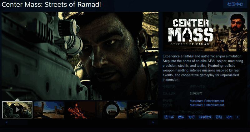 今日(12月20日),狙击模拟游戏《Center Mass: Streets of Ramadi》Steam页面开放,发售日待定,游戏暂不支持中文,感兴趣的玩家可以点击此处进入商店页面。