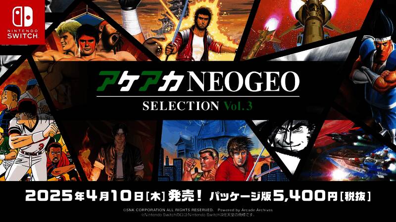 SNK 宣布将于 2025 年 4 月 10 日在日本推出两款新的 ACA NeoGeo 合集,分别为 ACA NeoGeo Selection Vol. 3 和 Vol. 4。