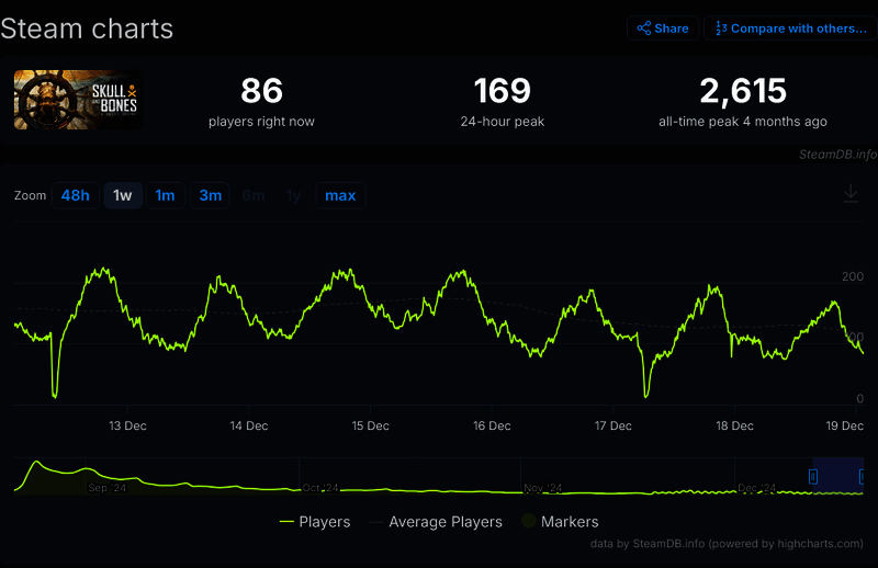 然而根据 Insider Gaming 的消息人士透露,育碧完全致力于继续支持这款游戏,并且据称“玩家数量可能会让人吃惊”。但显然这些玩家不存在于 Steam 上:根据后台数据显示,游戏在截至稿前的 24 小时内玩家人数峰值不到 200 人。