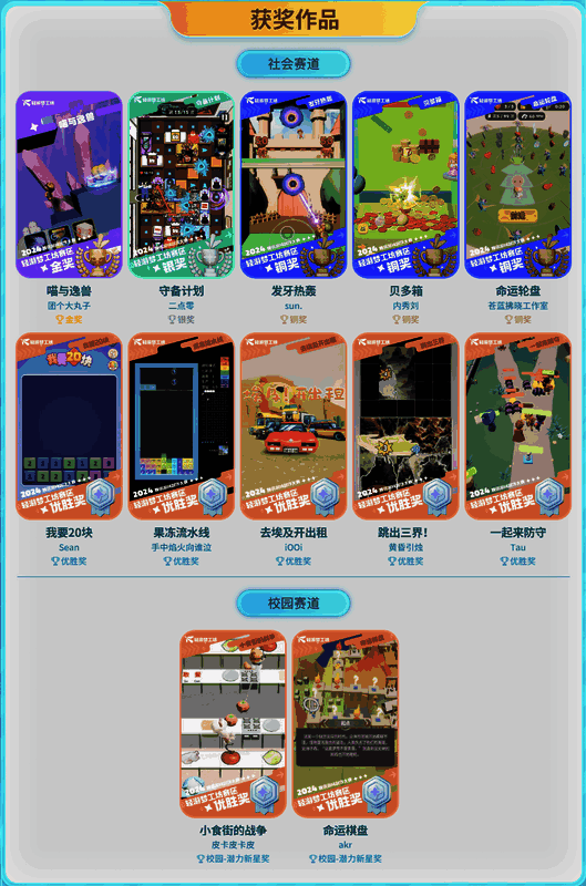 得益于此,轻游梦工坊赛区还诞生了《守备计划》《发牙热轰》《贝多箱》等优秀作品,涵盖塔防、多人、弹射、节奏、策略等多种类型,充分展现了创作者们的创意潜力。