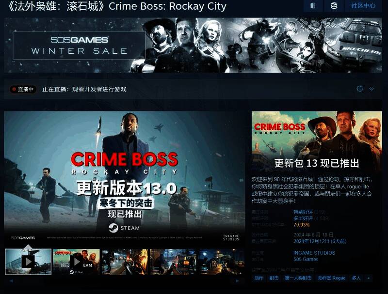 由INGAME STUDIOS进行开发、505 Games负责发行的动作类第一人称射击游戏《法外枭雄:滚石城》,最初于2024年6月18日发售,并在Steam平台获得了好评72%的多半好评。