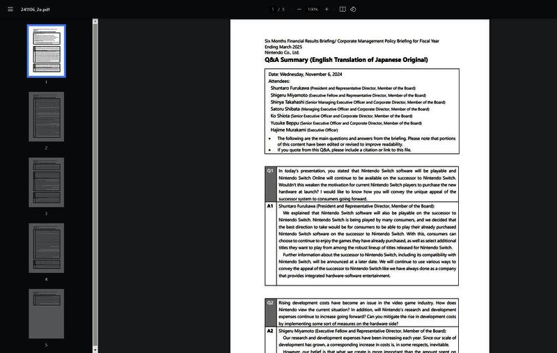 而资深执行官兼公司董事Ko Shiota则补充说:“因为我们已经熟悉任天堂Switch,所以在未来的开发环境中保持类似的基础将使我们能够延续已经积累的经验(意味着这一模式将在Switch 2中延续),这将随着时间的推移降低研发成本。”