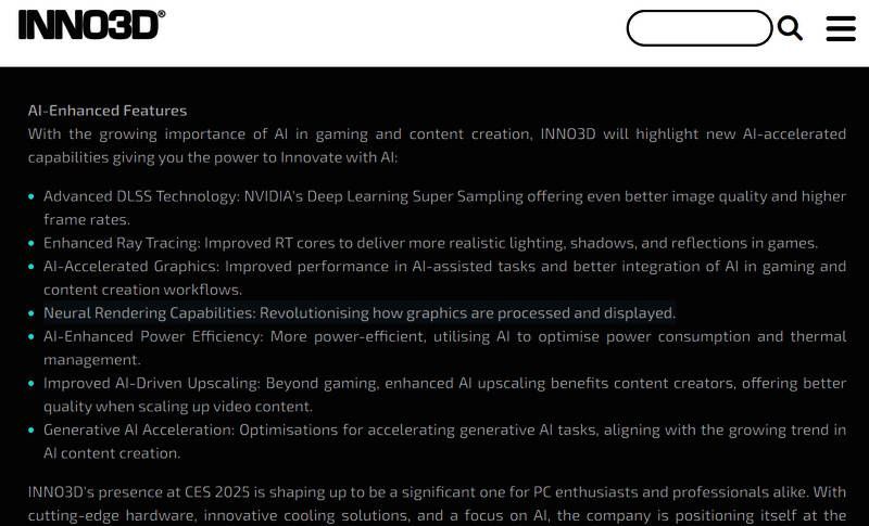 此外,根据映众在CES 2025上发布的公告,英伟达将引入“神经渲染”、“高级DLSS”“强化光追”等先进技术,提升GPU的性能。