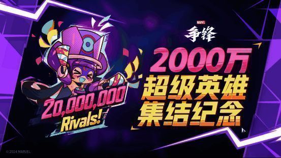 根据官方介绍,《漫威争锋》在开服4小时内,就荣登STEAM全球最热玩游戏TOP 2以及STEAM全球畅销榜TOP 1,上线仅12天就突破了2000w玩家这一关口,可谓是网易进军海外迈出的坚实一步。与此同时,官方宣布2000万超级英雄集结纪念喷漆“喜上伽喜”正式上线!喷漆特别加入“2000万”元素,与全球玩家共同庆祝这一辉煌时刻!