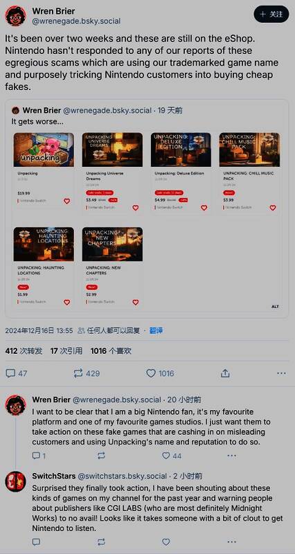 12月17日,《Unpacking Universe Dreams》 及其 DLC 被下架。现在搜索该游戏不会显示任何结果,看起来任天堂反应还是比较快的。
