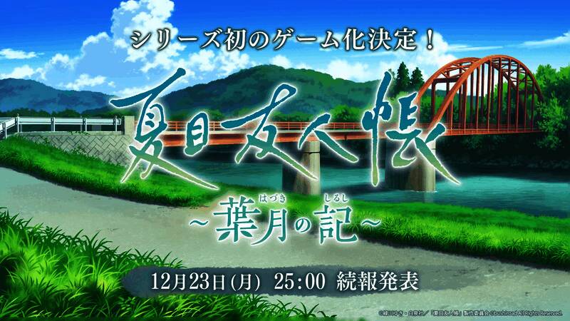 12月16日,《夏目友人帐》制作委员会宣布,将推出首款根据《夏目友人帐》漫画改编的游戏:《夏目友人帐:叶月之记》,发行商、开发商、游戏内容和登陆平台等详细信息尚未公布,更多信息将在北京时间12月24日0:00公布。