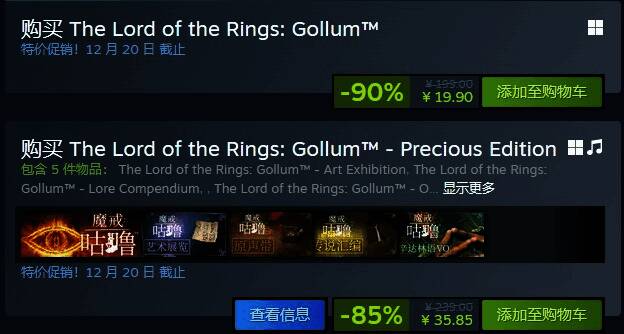 近日《魔戒:咕噜》在Steam上开启1折优惠活动,游戏原价199元,现在只要19.9元,你就能体验当咕噜的酸爽。活动截至12月20日结束,有想入正的玩家吗?