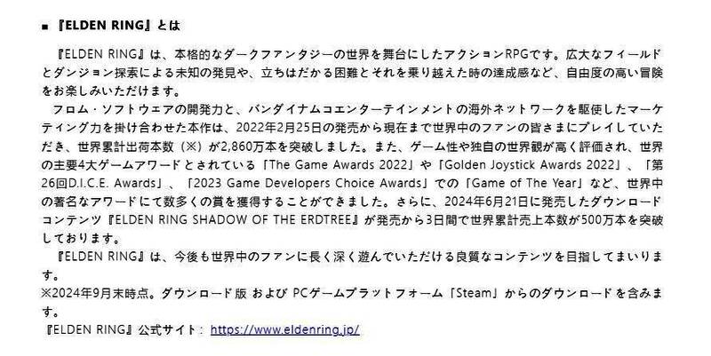 《艾尔登法环》上一次更新销量数据是在今年6月,当时的数据为2500万,也就是说,3个月内该作又售出了360万份。