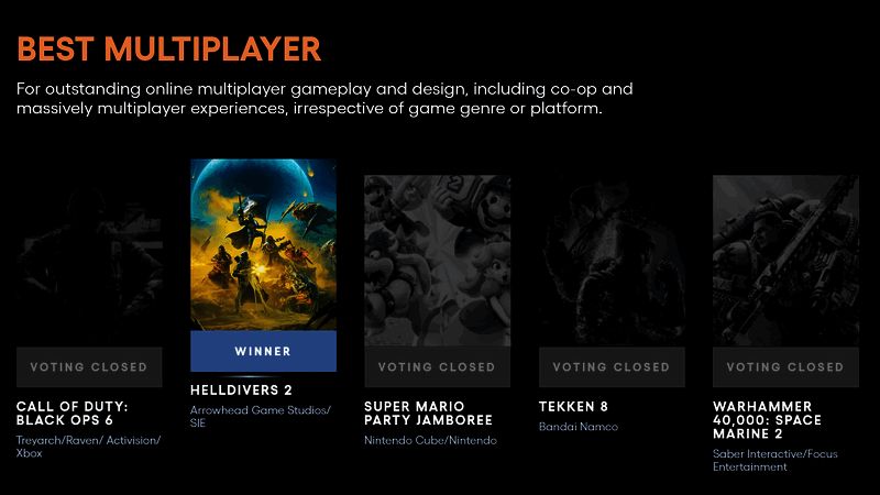 荣获了TGA 2024最佳多人游戏和最佳持续运营奖项(还获得了几项金摇杆奖)的多人合作射击游戏《绝地潜兵2》,算得上是2024年最出人意料的热门游戏之一。