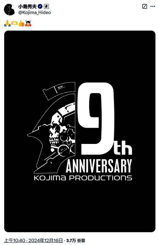 2024年12月16日是小岛工作室成立9周年的纪念日,小岛工作室官方和小岛秀夫发文庆祝了这一时刻。