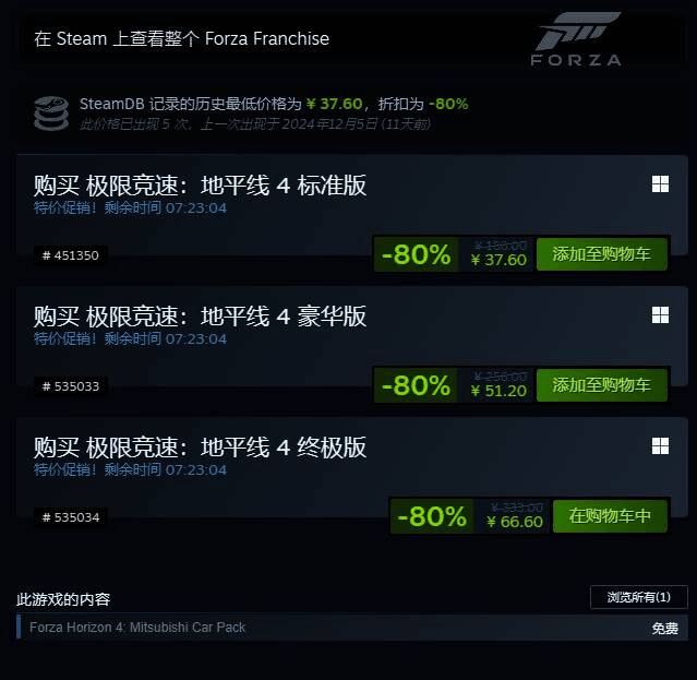 Steam商店页面:《极限竞速:地平线4》