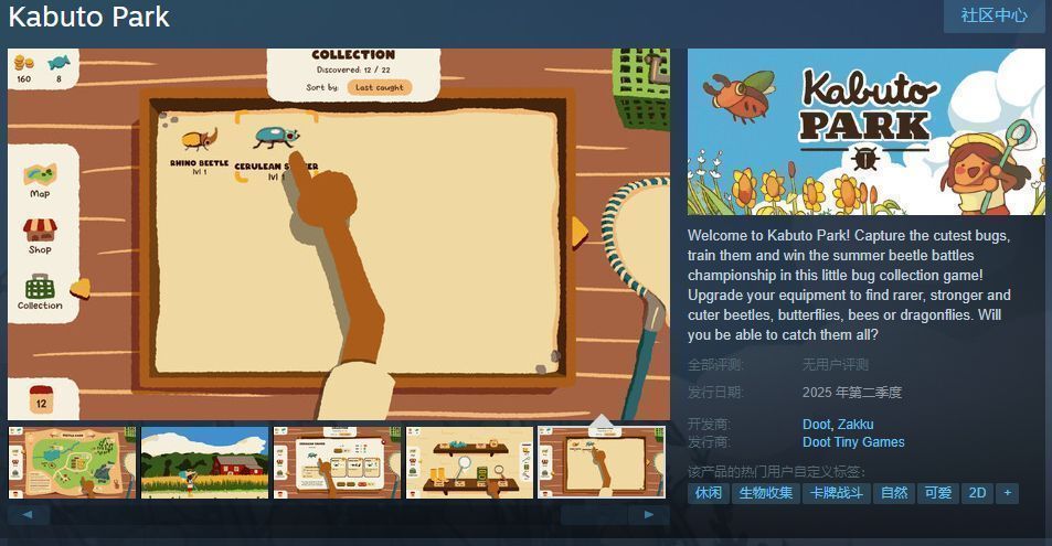 今日(12月14日),昆虫收集游戏《Kabuto Park》Steam页面开放,2025年第二季度发售,游戏暂不支持中文,感兴趣的玩家可以点击此处进入商店页面。