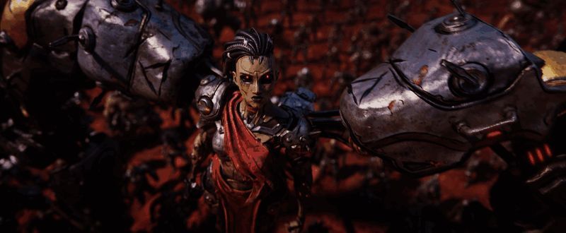 预告片一开场,两波械斗的人物吸引了所有人的目光:一方是穿着高科技战甲的狂野女汉子+带着精神控制手段的疯子阵营,另一方则是整齐合一的生化人配光头大佬。