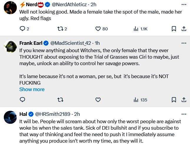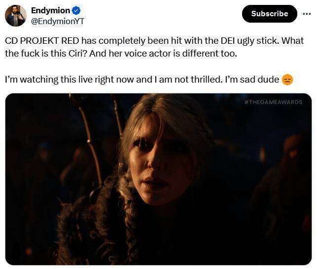 评论区有玩家表示:“失望啊!希里变大妈脸了。”“看起来不太好,希里取得主角位置,但却变得丑陋”“希里觉醒了,有男人下巴了”“这取决于希里在游戏中做什么,以及谁设计了这个女主。”“考虑到CDPR最近的行动,这款游戏可能会变得非常正确。”