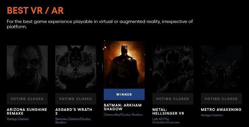 · 最佳VR/AR游戏:《蝙蝠侠:阿卡姆之影》