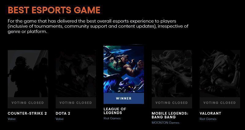 其他提名:《CS2》《DOTA2》《云顶之弈》《无畏契约》