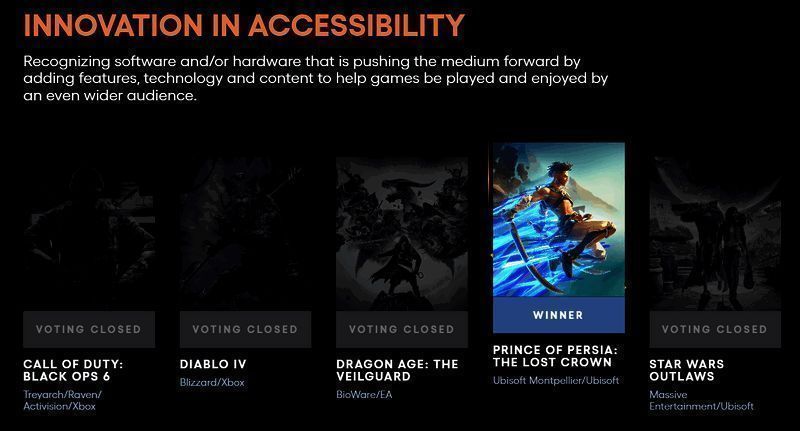 · 最佳无障碍创新奖:《波斯王子:失落的王冠》
