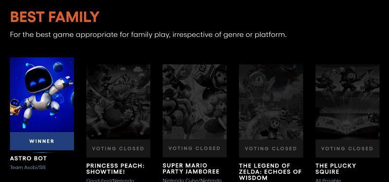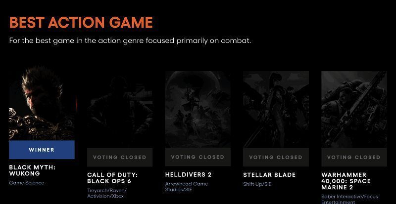 其他提名:《使命召唤:黑色行动6》《超级马里奥派对:空前盛会》《铁拳8》《战锤40K:星际战士2》